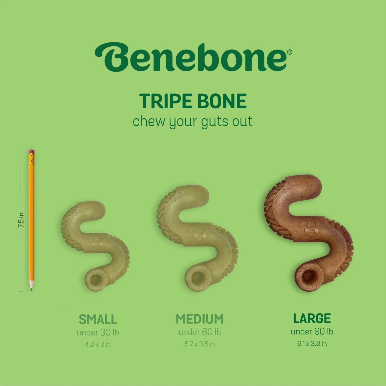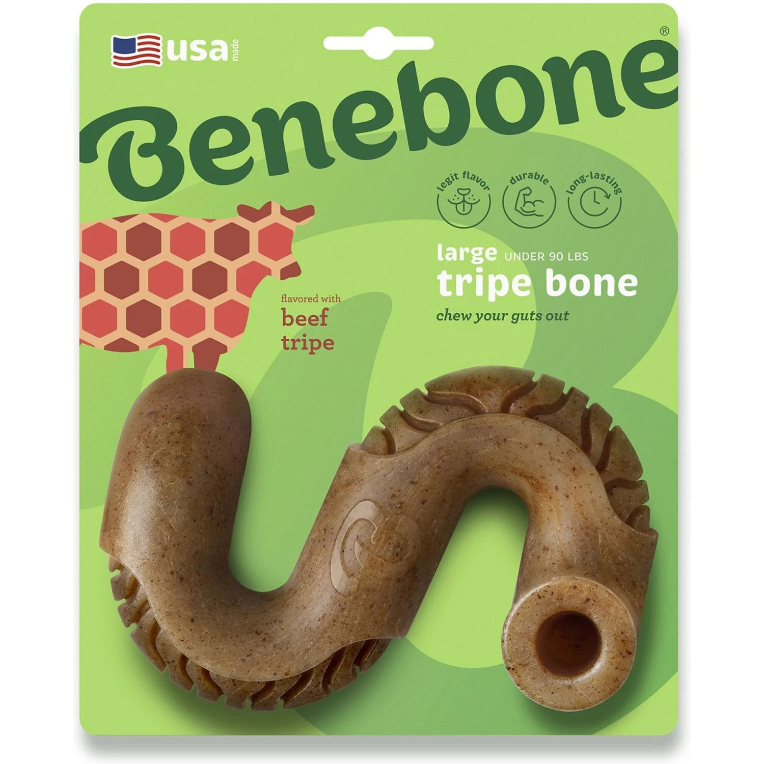 Give your pooch a chomping good time with the Benebone Tripe Bone Tough Dog Chew Toy! It’s made and sourced in the USA and flavored with a hint of real beef tripe—your furry friend will love the smell, but you’ll hardly notice it. Designed tougher than real bones, this toy can last for weeks depending on your dog’s chewing behavior. It’s a squiggly chew that’s curved with a paw-friendly grip and helps keep your fur-iend busy and mentally stimulated for hours. You can even put some peanut butter or cheese into the little pocket on the ends for extra-delicious chewing fun.