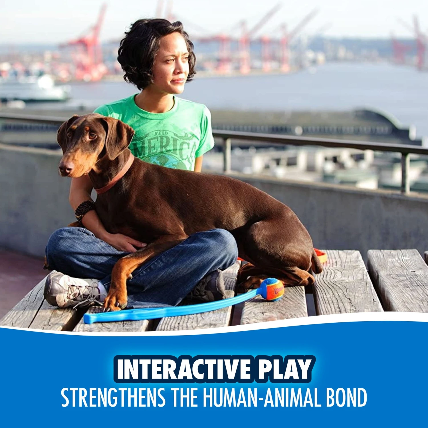 Every dog plays differently and, since not all toys are created equal, it’s always best to keep a close watch on your pup in case things get ruff. Supervised play will help toys last longer and most importantly keep your pal safe. No dog toy is truly indestructible, so always remove the toy from playtime if pieces begin to break off. Use only standard tennis balls or Chuckit! Brand balls manufactured for use with this product. High speed flying balls can cause injury to animals and people. Do not aim or throw directly at people or animals. Be alert, the ball may travel in unanticipated directions. Not for indoor use.