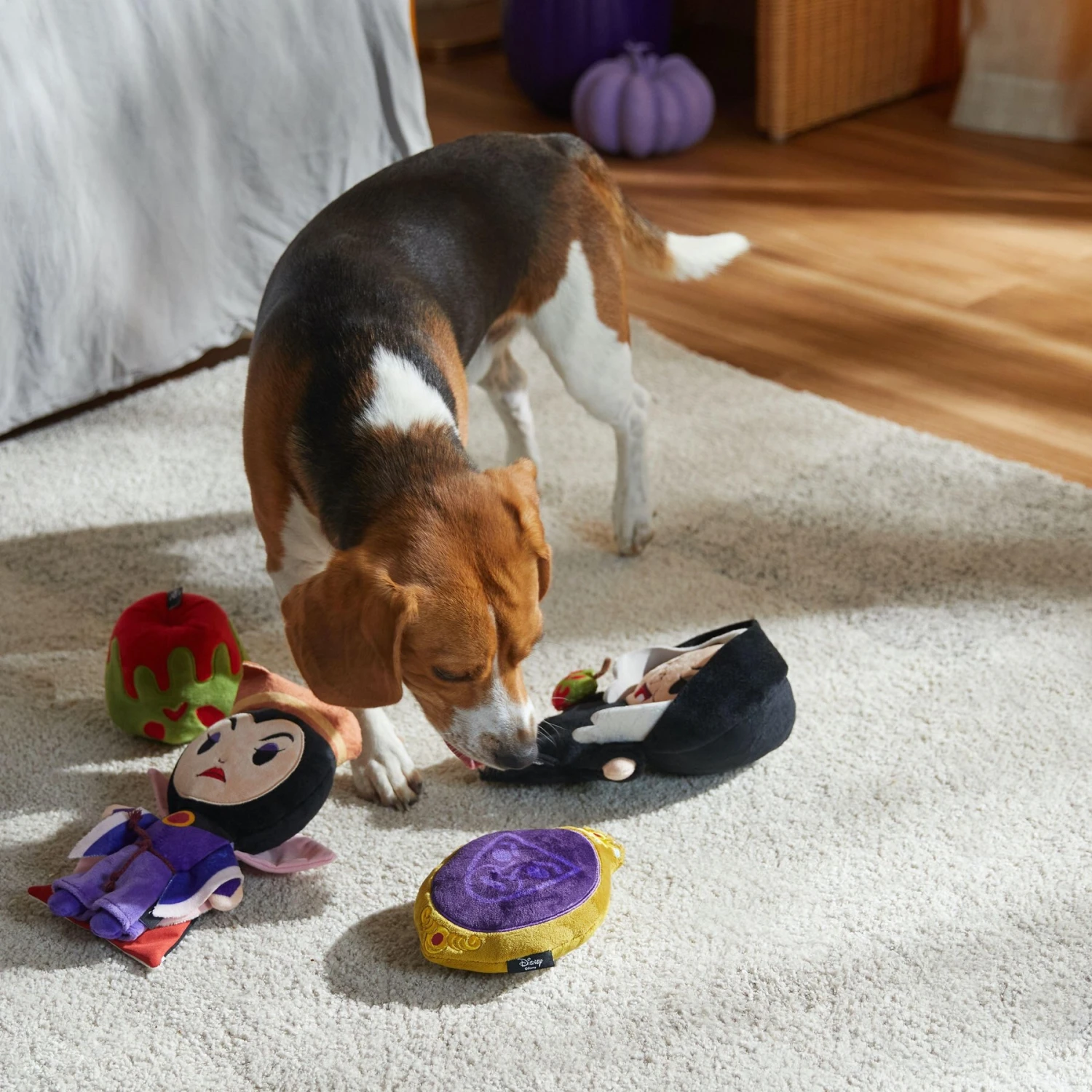 - Four plush squeak toys in one featuring the Queen’s two forms and accessories from Disney’s Snow White and the Seven Dwarfs—from The Disney Collection, available only at Chewy.