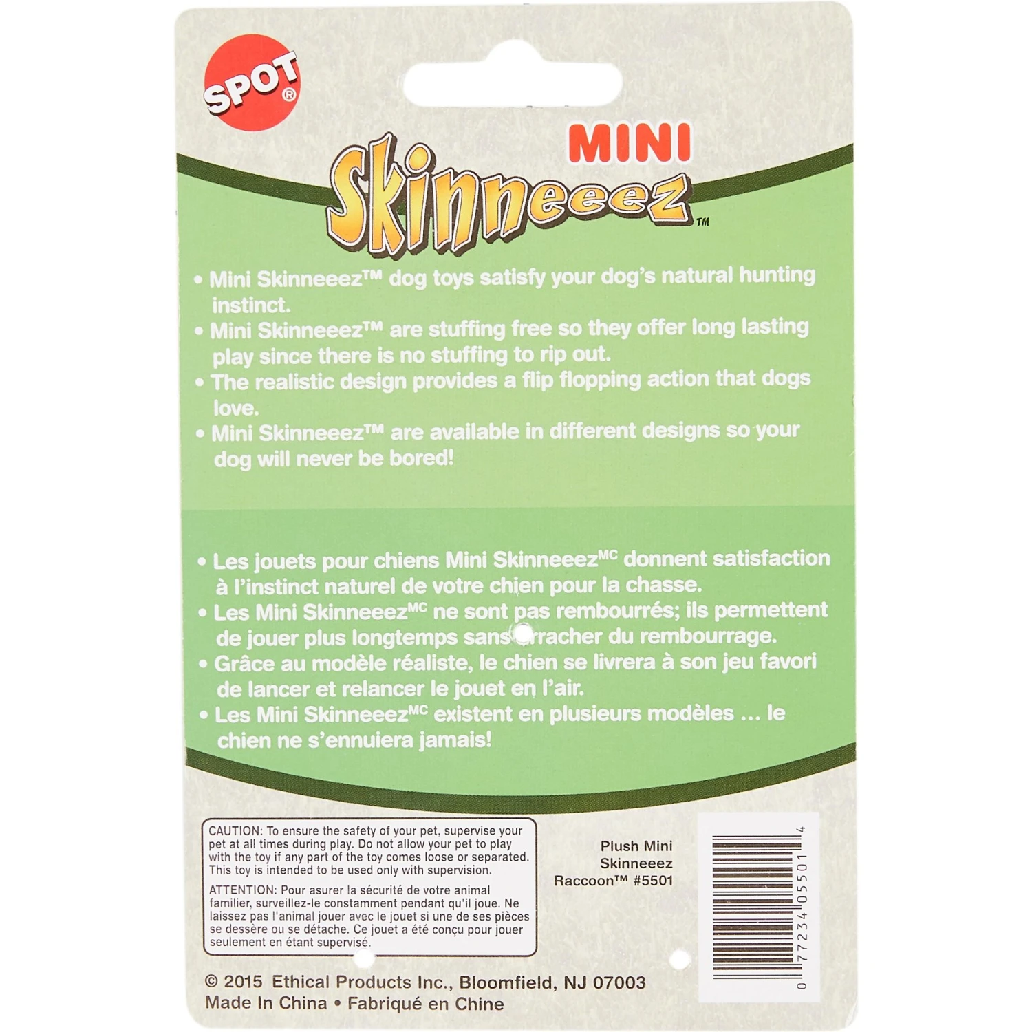 The Ethical Pet Skinneeez Forest Series Raccoon Stuffing-Free Squeaky Plush Dog Toy is a paw-some way to treat your furbaby to tons of play with less mess. This stuffing-free toy helps to satisfy your pup’s natural hunting instinct. The realistic animal design creates a flip flopping action that dogs love. The squeaker inside adds extra fun, and the toy is machine washable for su-paw easy cleaning.