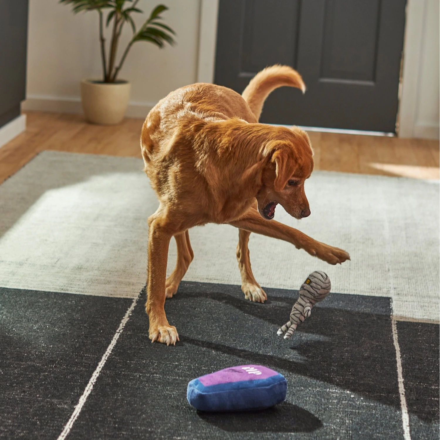 Invite this duo of plush toys to your pup’s next Halloween party and watch the frightful fun unfold! This two-pack comes with a coffin toy and a mummy for twice the playtime fun. They’re covered with soft fabric and plush-stuffed, so they’re easy to catch, carry and grab onto without being ruff on your pup’s mouth. Plus, these toys go squeak in the night! Just give one a squeeze, toss it and watch your dog go racing off after their new favorite friend.