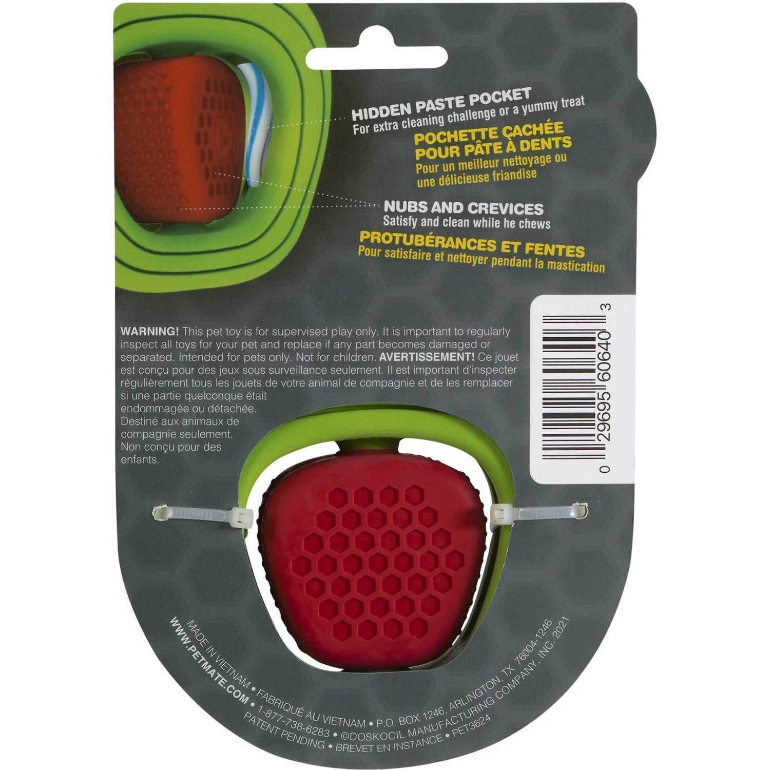 - Features a hidden inner pocket for toothpaste or a spreadable treat.