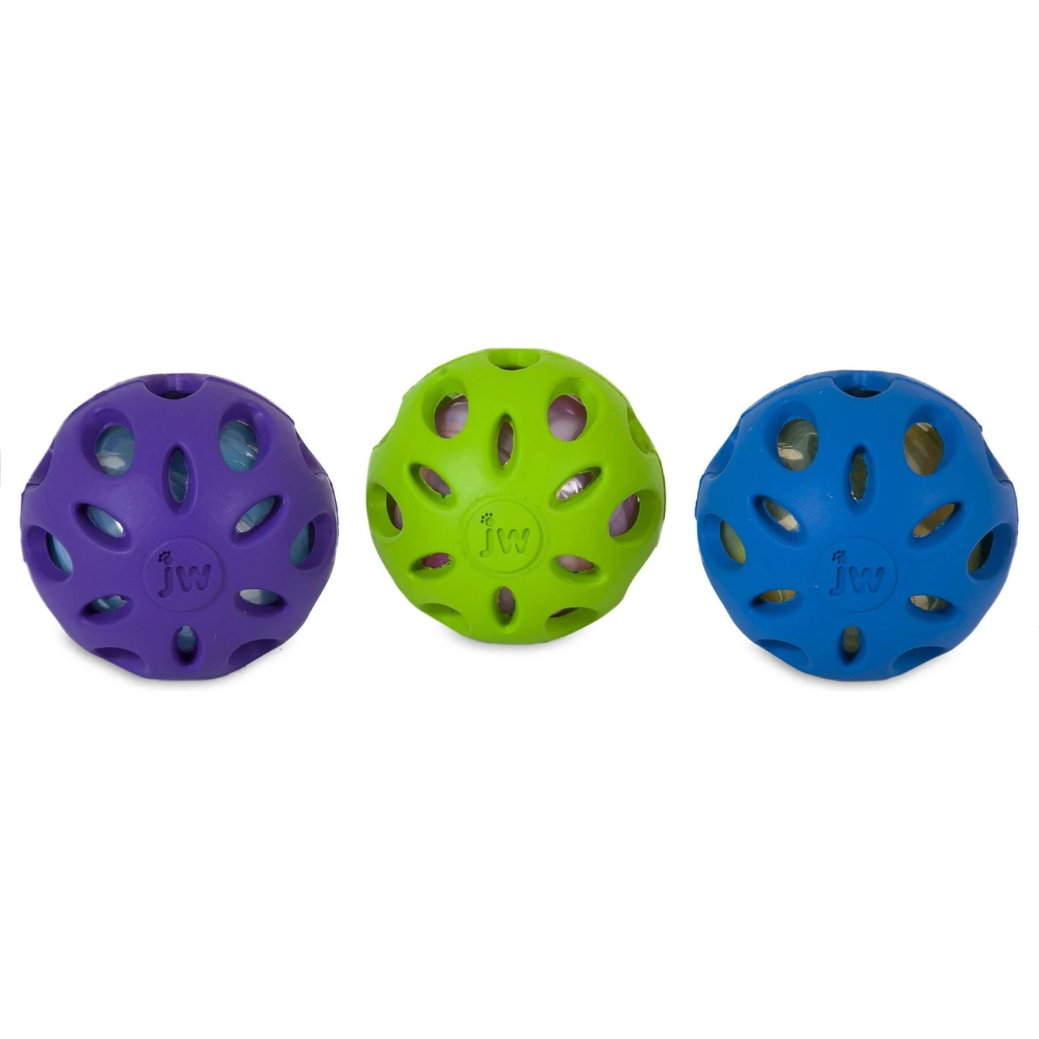 The JW CRACKLE HEADS CRACKLE BALL LG provides hours of interactive playtime for your furbaby. The ball features a tough outer layer that provides a protective wall, so it’s tough and paw-fect for games of fetch and toss. The interior is made of recyclable plastic bottle material, and the outer layer has holes, so your best friend can easily hear its enticing crunchy sound. This ball ships in random fun assorted colors.