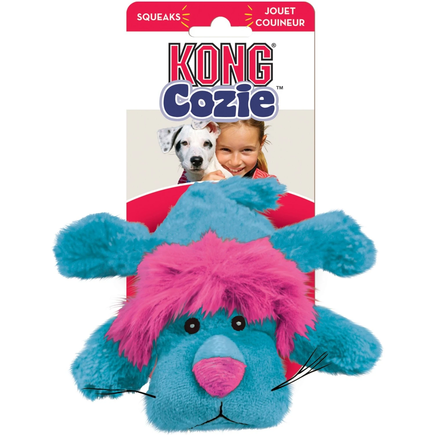 KONG Cozie King the Purple Haired Lion Dog Toy, Medium—The KONG Cozies are cute, soft and cuddly plush toys made with an extra layer of material, so they’re extra tough. Cozies are perfect for a game of fetch or as a comfort toy for your furry friend. Grab one of the cute Cozie characters for your dog!