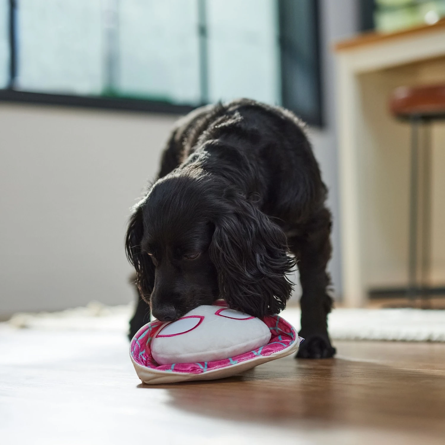 Time to web swing into another action-packed play session with your furry friend and this Marvel’s Ghost-Spider round plush toy—available only at Chewy. After cleaning up the city streets, this spidey superheroine just wants to enjoy a few rumbles and tumbles with your dog. Fetch instead of fighting? How about tag instead of taking on every baddie in New York? Ghost-Spider is here to join the party as a round, plush-filled toy with crinkle paper and a sewn-in squeaker that will make their ears perk up and their tails wag with every sound. When the fun’s over and the city is safe, it’s time to snuggle up under the stars until it’s time to fight crime again.
