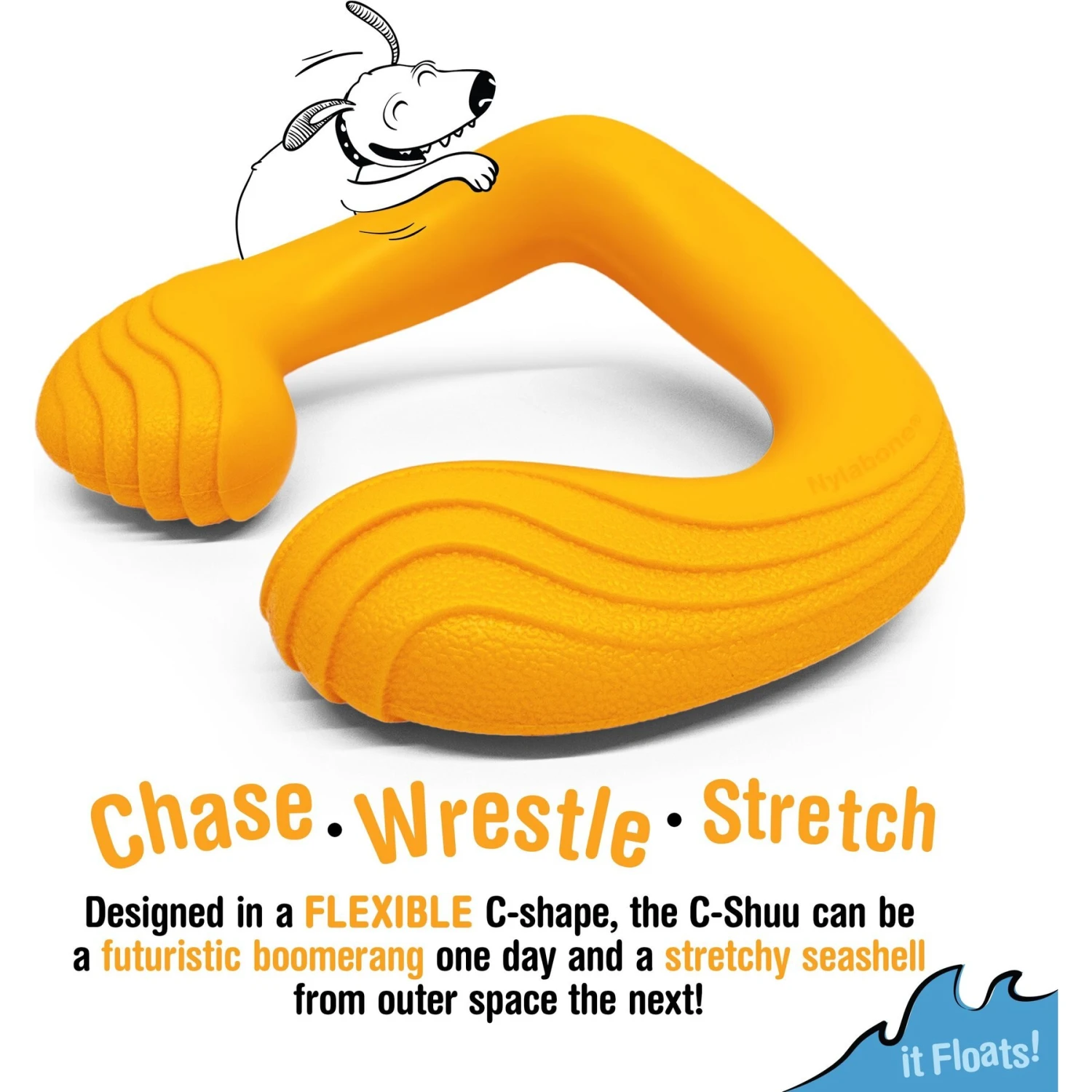Spark your furbaby’s imagination and unleash his creative potential! The Nylabone Creative Play C-Shuu Dog Chase Toy is made from flexible material designed into a whimsical C-shape that encourages your pup to play in a variety of ways. He can stretch it, chase it, or wrestle it—the possibilities are endless! Just remember that this interactive toy is not intended for chewing.