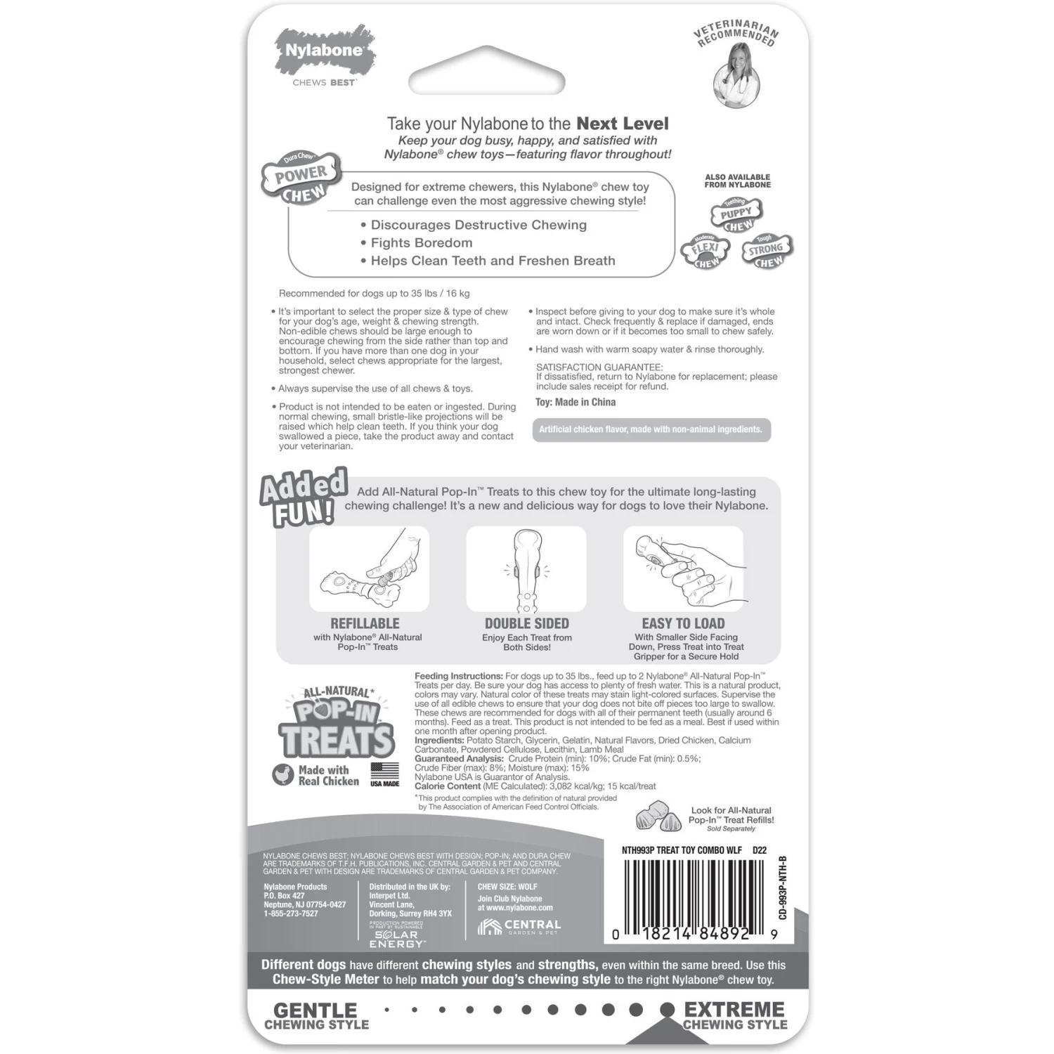 - Includes Pop-In Treats that you can add to extend chew and treat time.