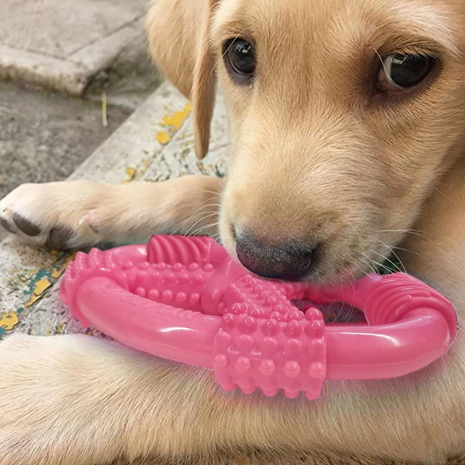 The Nylabone Puppy Chew Spin Tug & Play Toy encourages your pup to spin, tug, and play his way to healthy chewing habits with this interactive Puppy chew toy! Made from pup-friendly material, this chew toy helps relieve teething discomfort for your four-legged friend and it makes the most of dental ridges and nubs to support clean teeth. Watch your little buddy try to get the upper hand on this ring-shaped toy, while he enjoys the delicious flavor. Indulge your new best friend’s natural chewing instincts with this USA-made puppy teething toy!