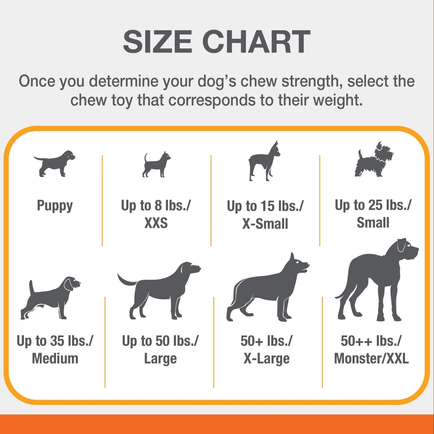 It’s important to select the proper size & type of chew for your dog’s age, weight & chewing strength. Non-edible chews should be large enough to encourage chewing from the side rather than top & bottom. If you have more than one dog in your household, select chews appropriate for the largest, strongest chewer. Always supervise the use of all chews & toys. Products not intended to be eaten or ingested. If you think your dog swallowed a piece, take the product away and contract your veterinarian. Inspect before giving to your to dog to make sure it’s whole and intact. Check frequently & replace if worn or damaged or if it becomes too small to chew safely. Hand wash with warm soap water & rinse throughly.