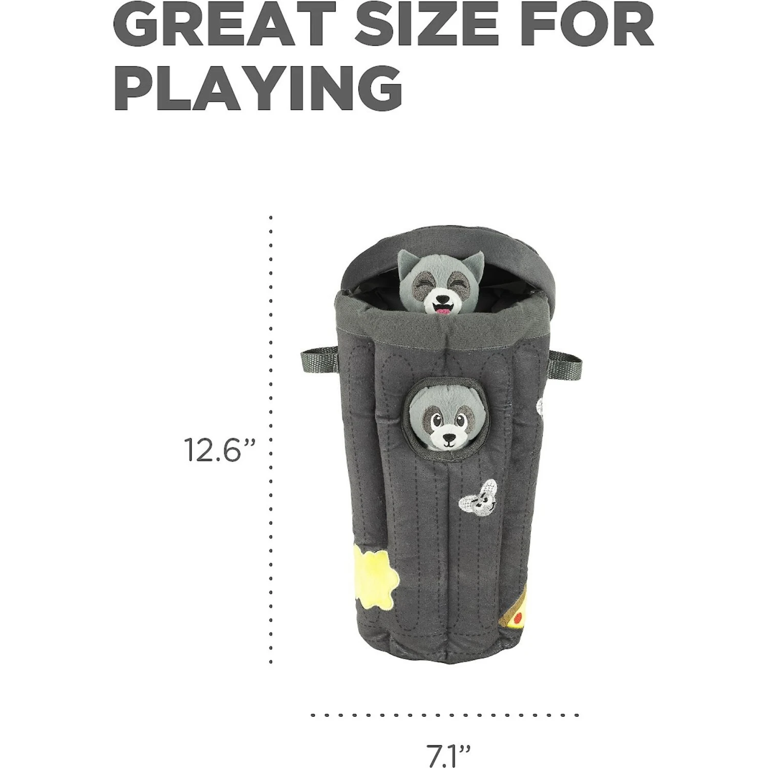 - Keeps your curious canine entertained when you hide the irresistible racoons inside the trash can.
