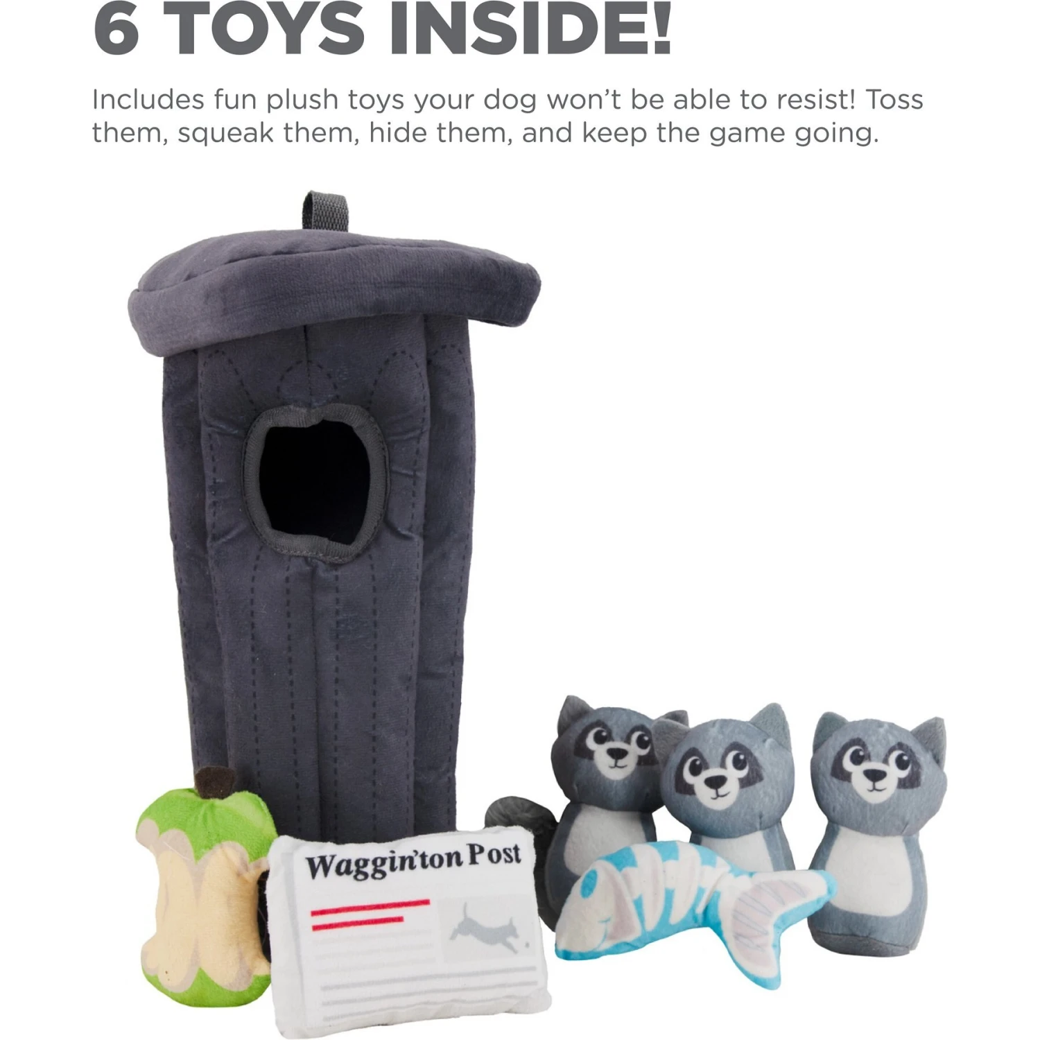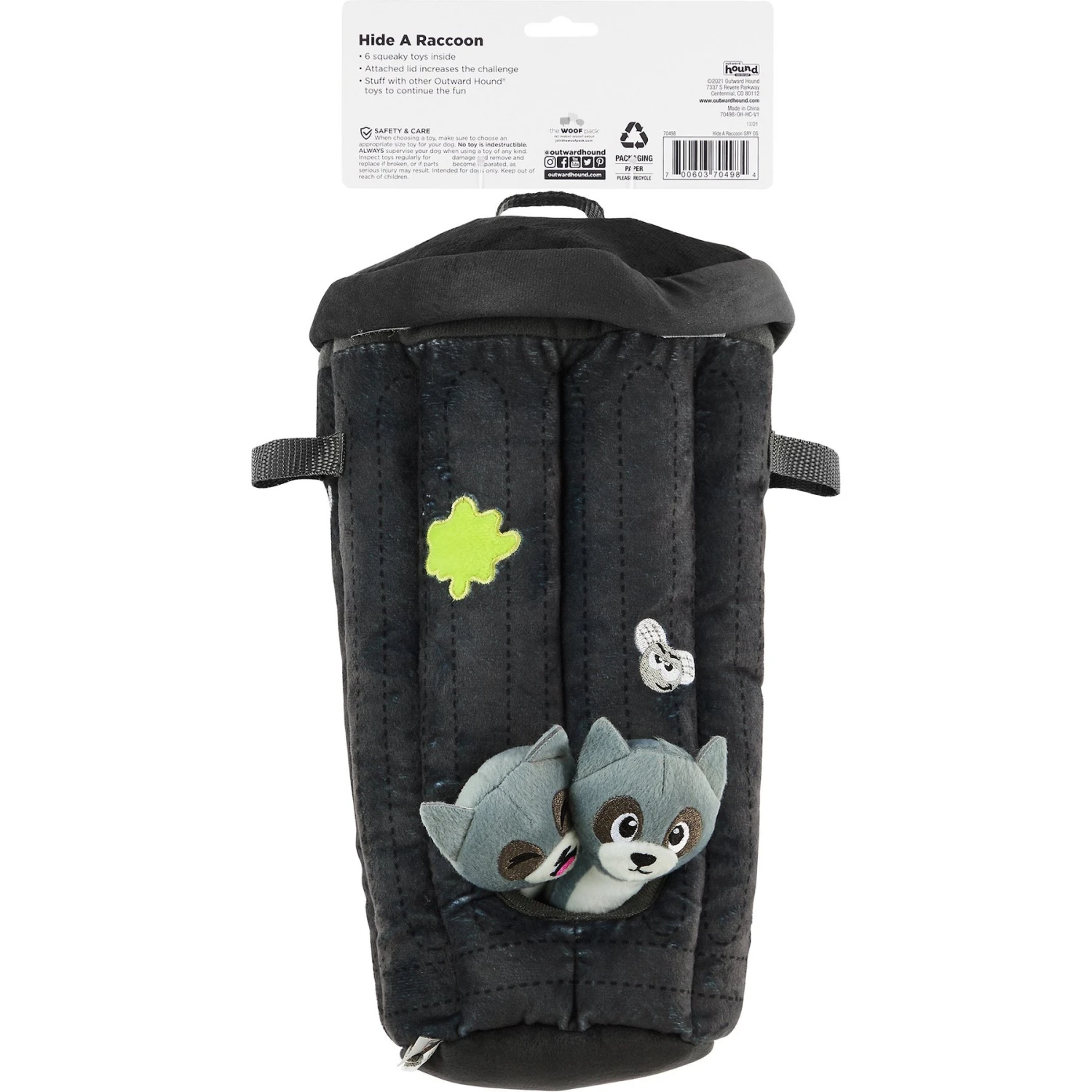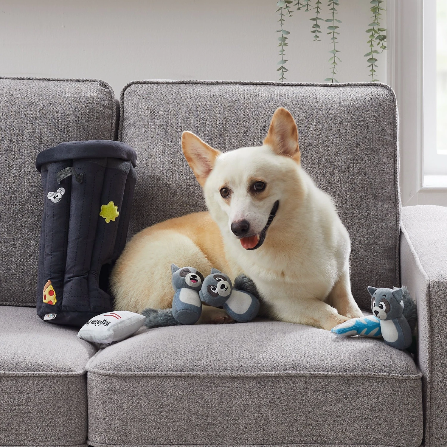 Chase away your furry friend’s boredom with Outward Hound Hide A Raccoon Puzzle Plush Dog Toy! This puzzle toy is made of soft, plush materials that is easy on the teeth and gums, making it the paw-fect puzzle for young and old puppers alike. Featuring a hilariously adorable trash can toy and six stuffed racoons, this two-in-one puzzle toy provides your pal with essential mental and physical stimulation—simply stuff the trash can with the racoon friends, toss it, and watch your pal’s instinctual hunting drive kick in as he digs them out! But if you’re in the mood for a classic game of fetch, the squeaker-stuffed racoons have your back—chuck one of those adorable racoons to drive away boredom for hours to come!