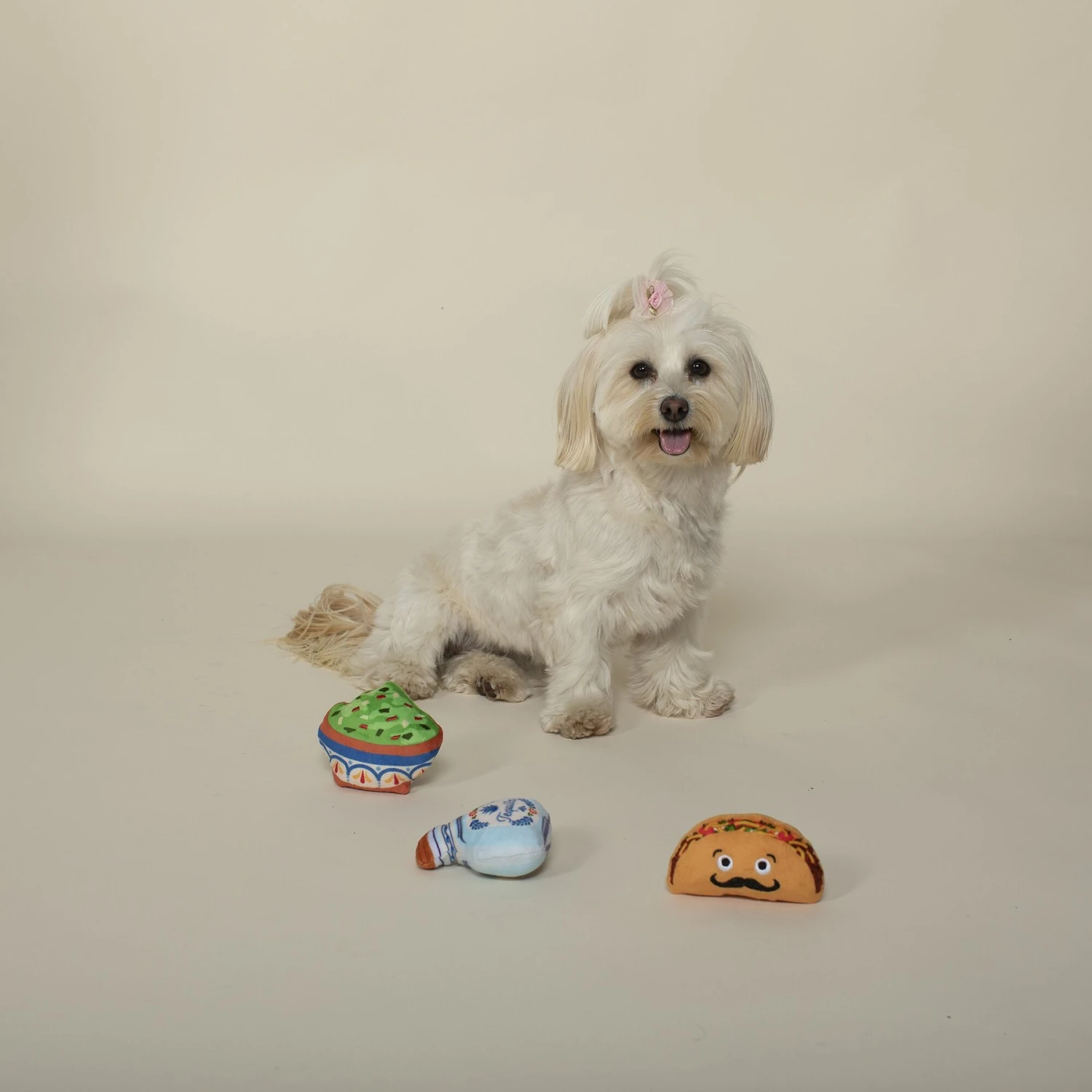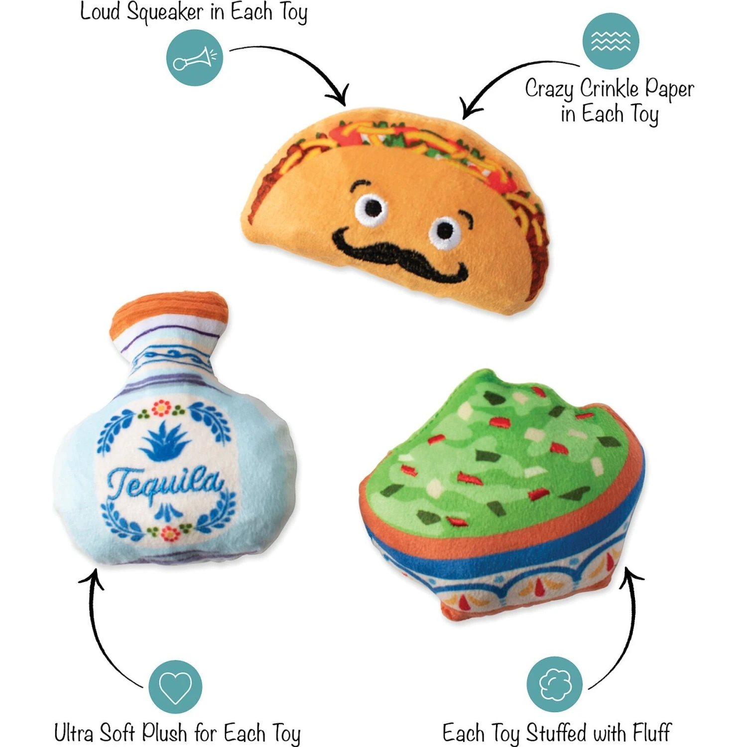 Play, play, play all day–such is the life of a dog. This Pet Shop by Fringe Studio Taco Tuesday Small Dog Squeaky Plush Dog Toy set is the perfect companion for either solo or interactive play—as these toys are great for tossing, carrying, and fetching. Each toy has a super loud squeaker and crazy crinkle paper, sure to get and keep your pet’s attention. Suitable for small and medium dogs, this toy is not a good match for aggressive chewers.