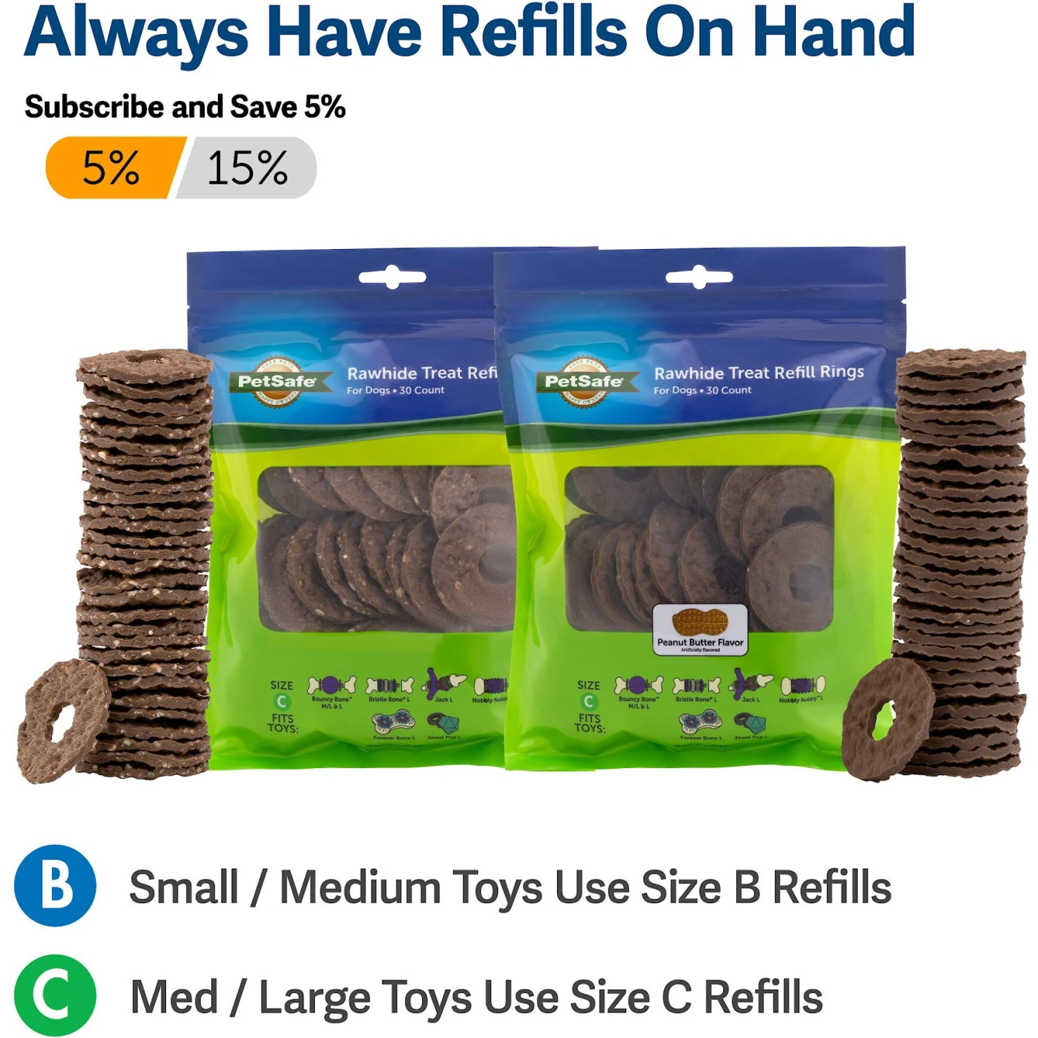 - You can add treat rings to the toy to provide long-lasting entertainment. It will keep your buddy busy for 20-30 minutes!