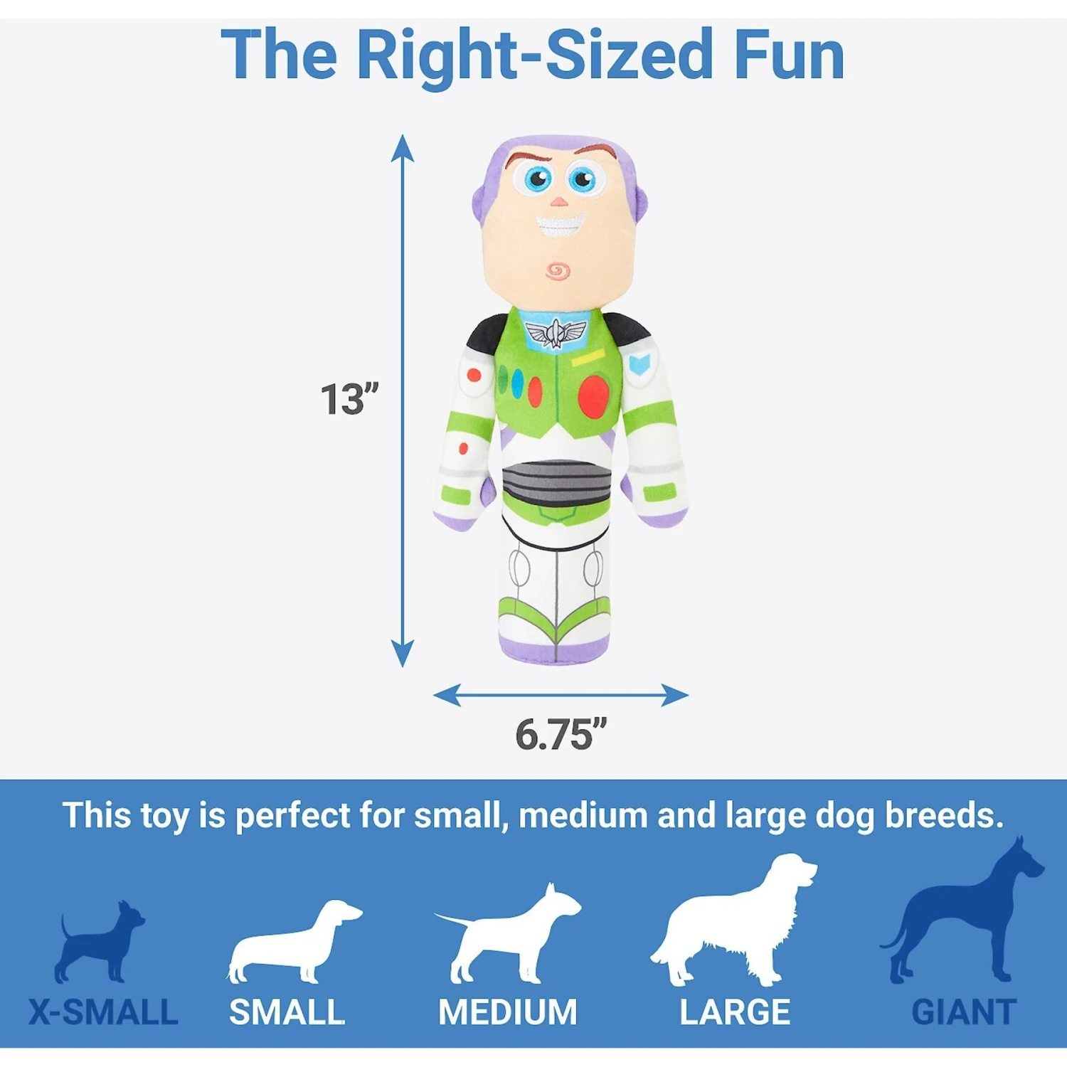 - Buzz Lightyear plush toy features built-in squeaker and crinkly bottle to level up playtime.