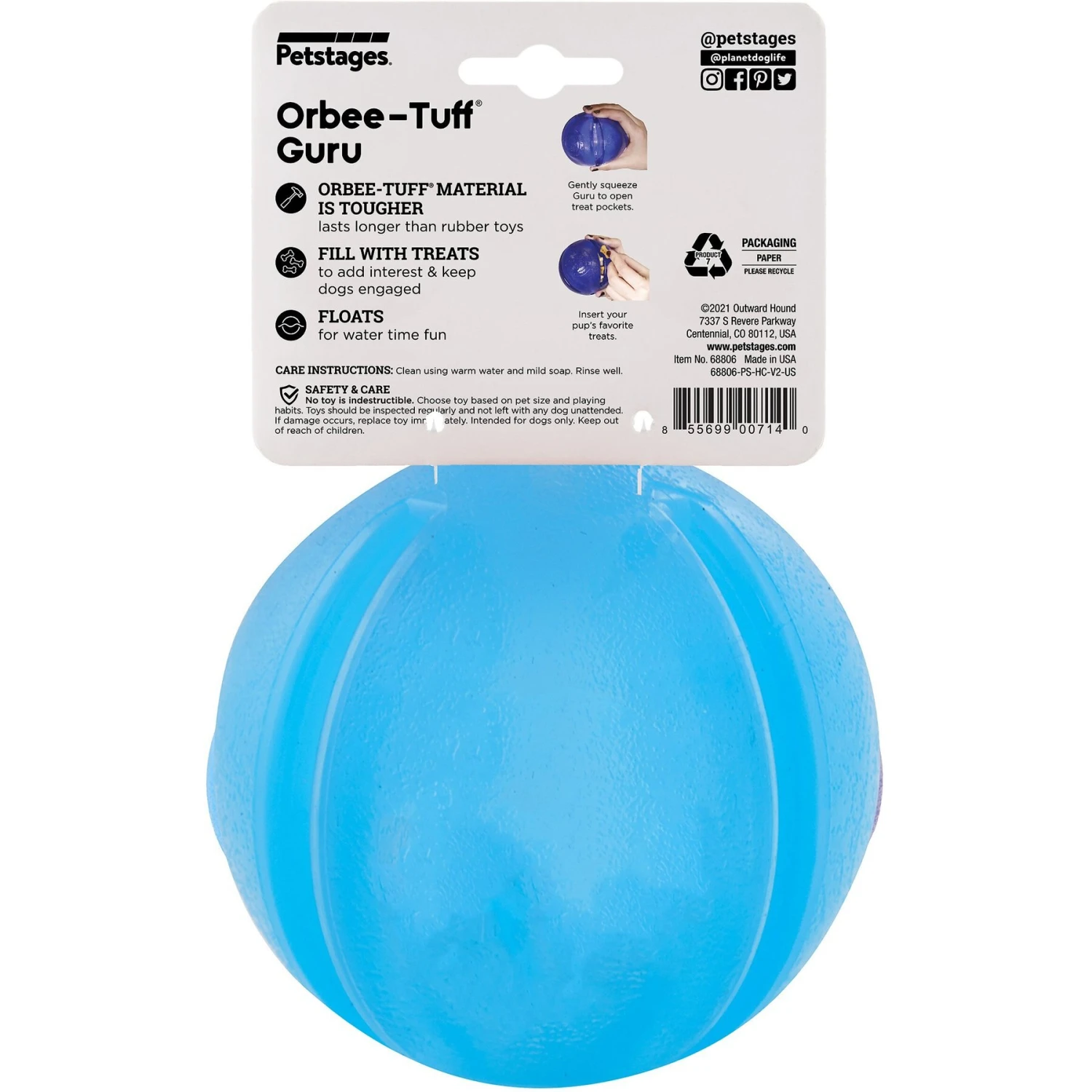 Help your dog become the Treat Guru you know he can be with the GuRu Interactive Dog Toy. This ultra-durable interactive toy features five openings that you can use to bury your pup’s favorite treats. Once the goodies are out of sight, dogs will have to chew, squeeze and work their tails off to release them. The GuRu Ball will only release treats when your furry friend has applied just enough pressure for them to pop out! The texture is durable enough to stand up to play, yet gentle on your pup’s gums as she works tirelessly to get a grip and earn her treats. Load each opening with your dog’s favorite food or treats like kibble, bully sticks, carrots, apples, Planet Dog Treats, peanut butter, or whatever else your dog goes crazy for!