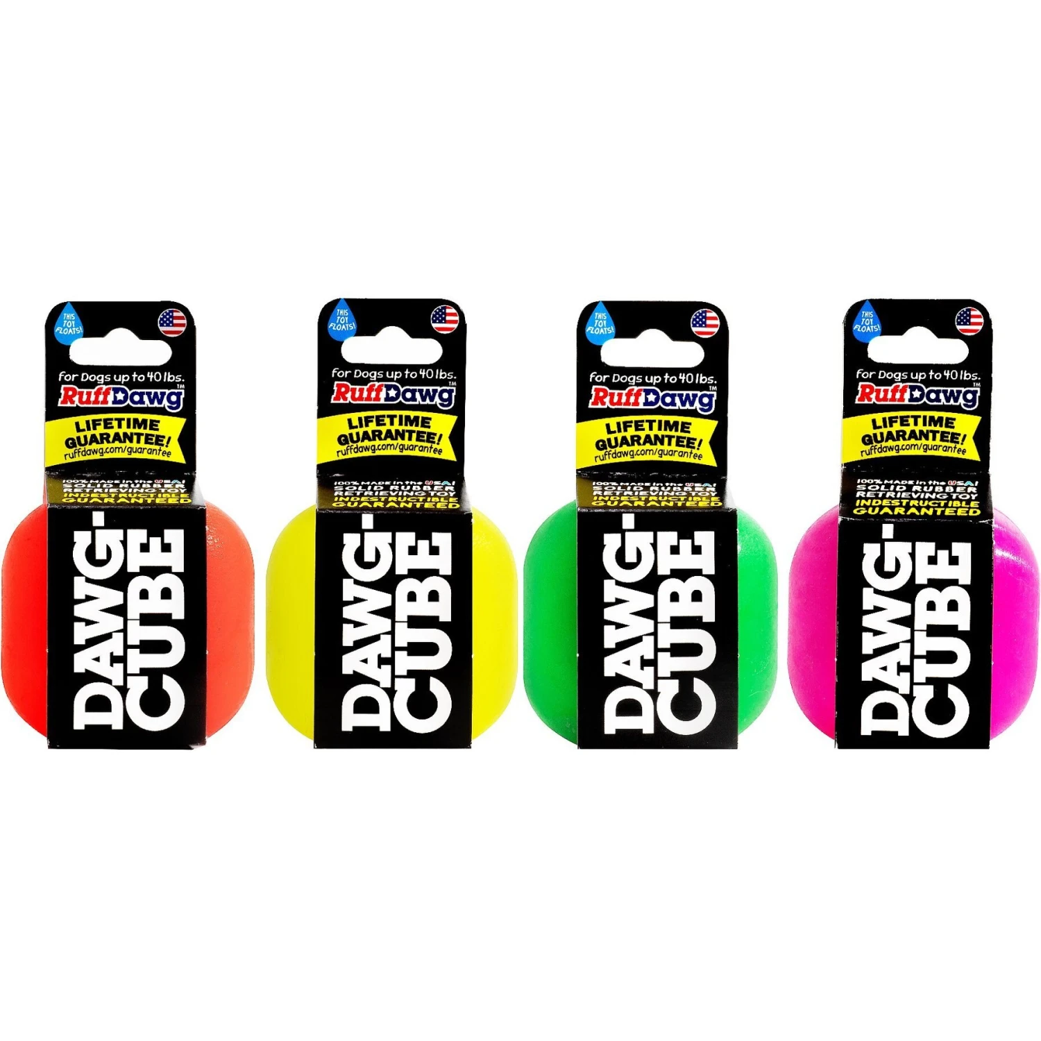 Bounce around with your best bud and the Ruff Dawg Dawg-Cube Dog Toy. This cube-shaped toy features an unpredictable bouncing action to capture your dog’s attention. It even floats on water for grr-eat fun on land, at the beach or in the pool. Each Dawg-Cube is made with durable rubber for long-lasting use. And when it’s seen its better days, this earth-friendly toy can be recycled.