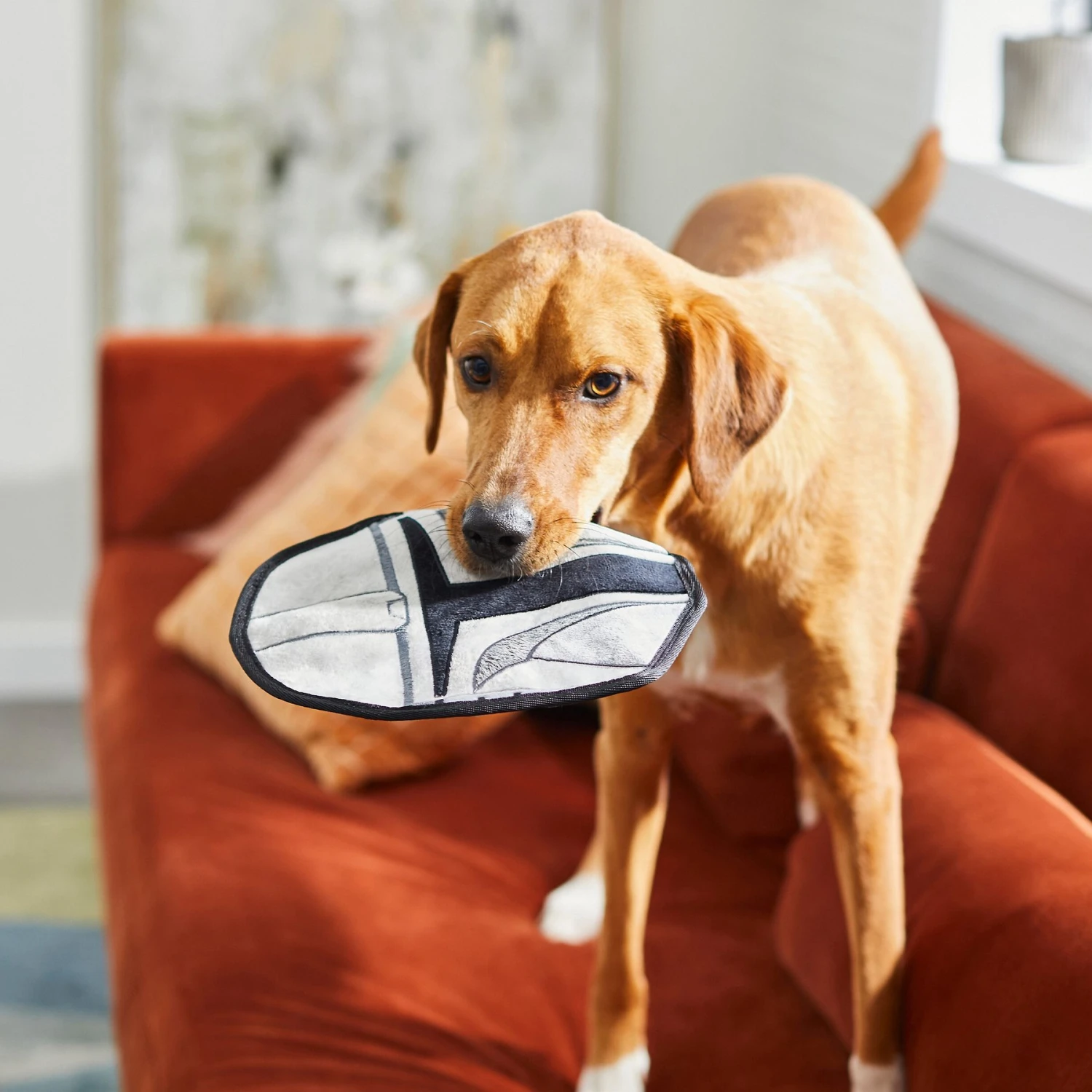 Bring home a new bounty for your bestie with this Mando-inspired plush toy, available only at Chewy! This thin, stuffing-free toy puts a twist on the traditional plush with a classic soft cover and a flat shape that’s easier to catch, carry and play with than a bigger, fluffier toy. Inside, there are four squeakers to keep them focused on all the four-legged fun and put them into play mode for a good interactive game sesh. Squeak him, toss him, catch him, fetch him—Mando is up for whatever your superfan gets up to when they’re on the hunt for good times!
