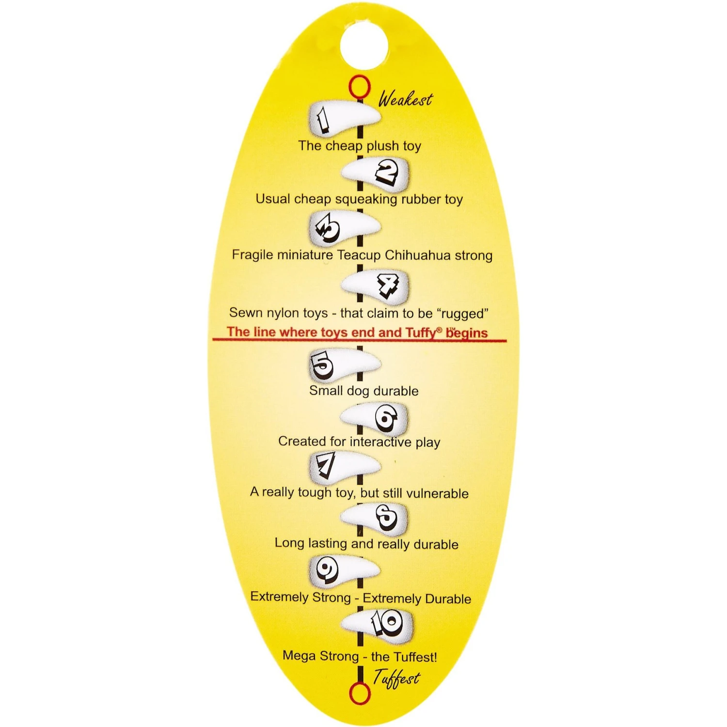 The Tuffy’s Series Toys are designed to be play toys and not chew toys. Every dog plays differently and, since not all toys are created equal, it’s always best to keep a close watch on your pup in case things get ruff. Supervised play will help toys last longer and most importantly keep your pal safe. No dog toy is truly indestructible, so always remove the toy from playtime if pieces begin to break off.